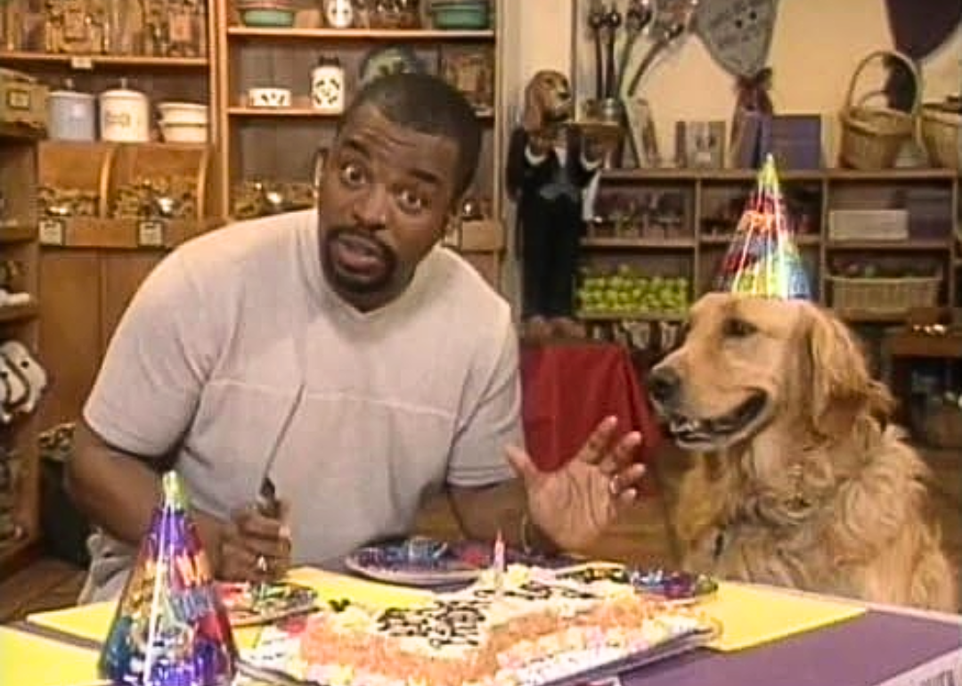 LeVar Burton and a dog in a scene from Reading Rainbow.
